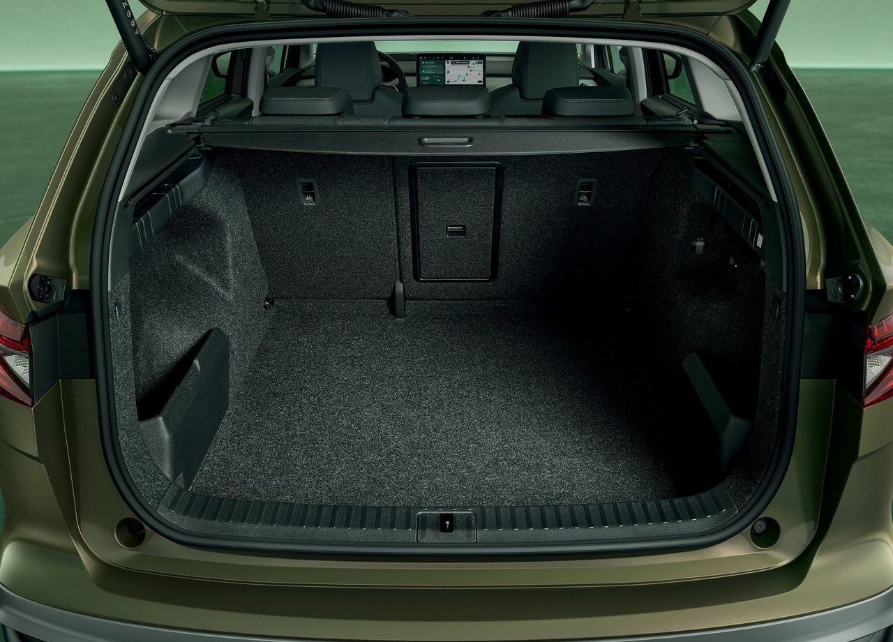 The new Enyaq provides ample interior space for passengers, complemented by a generous luggage capacity. Its interiors are characterised by timeless designs, intuitive controls, and enhanced standard equipment. The redesigned steering wheel now features Škoda lettering in place of the brand logo. A 5-inch Digital Cockpit comes as standard, with an optional head-up display featuring augmented reality available. The Design Selections prioritise sustainability, using innovative, durable, and practical materials. Additionally, the new Enyaq introduces several Simply Clever details to the series, including a QR code in the boot.